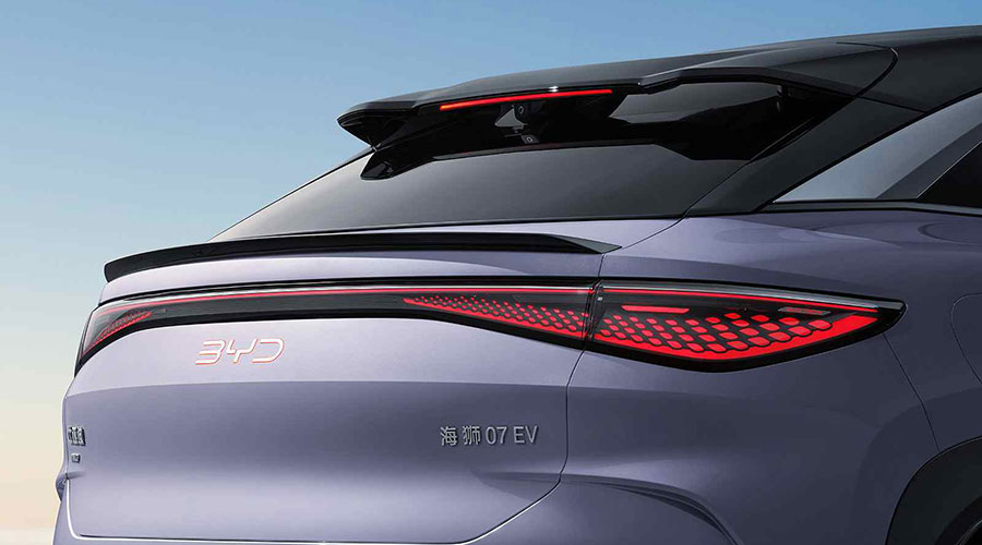 The SEALION 7's futuristic tail lamps combine sleek linear light strips with water-drop-shaped dots, creating a sense of movement and energy. These design elements evoke the high-speed motion of water droplets, giving this electric SUV a modern aesthetic that stands out on the road.